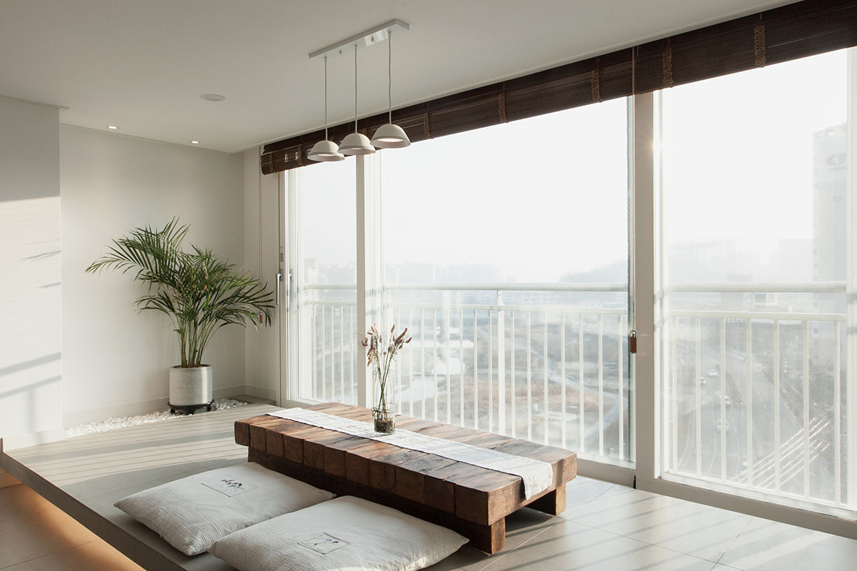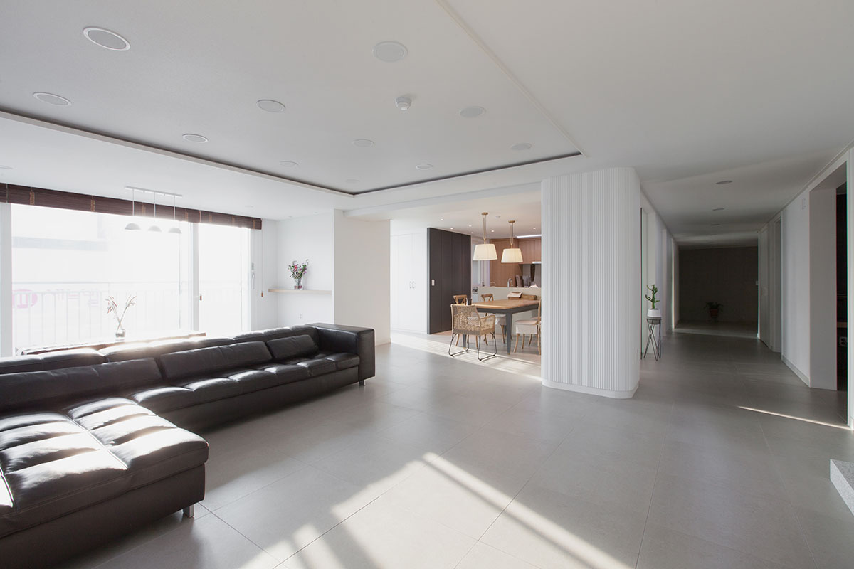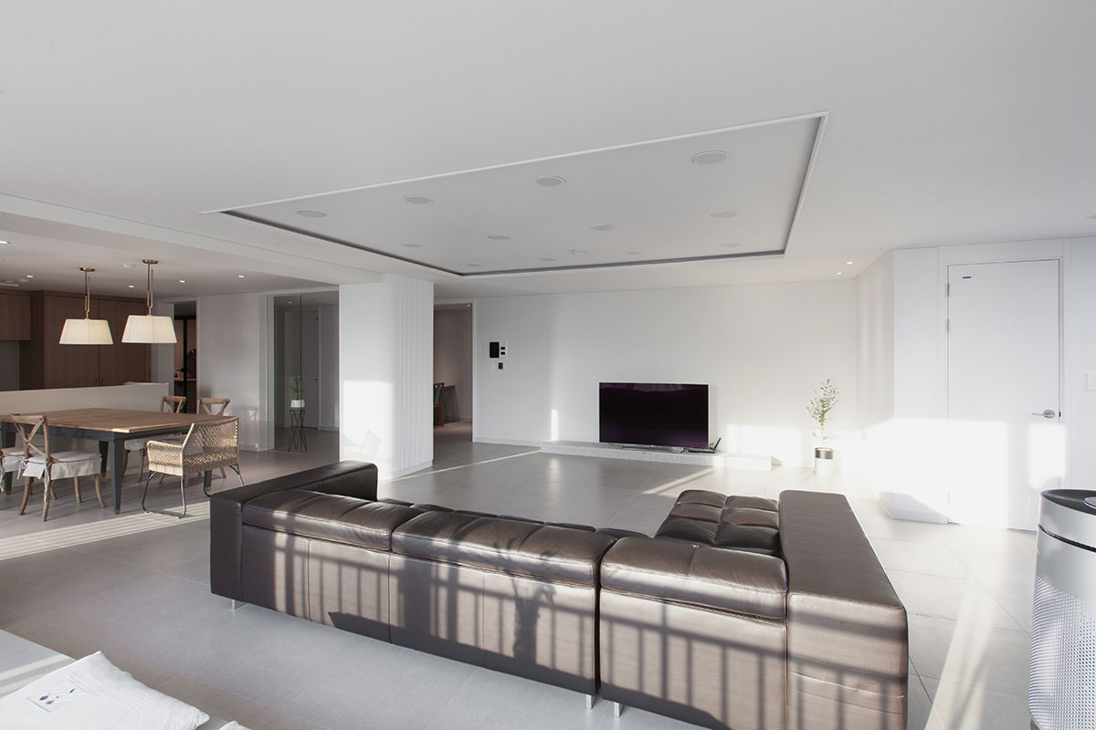넓은 거실의 뒷공간은 단을 높여 한국적인 생활양식인 좌식생활을 할 수 있도록 제안하였습니다.